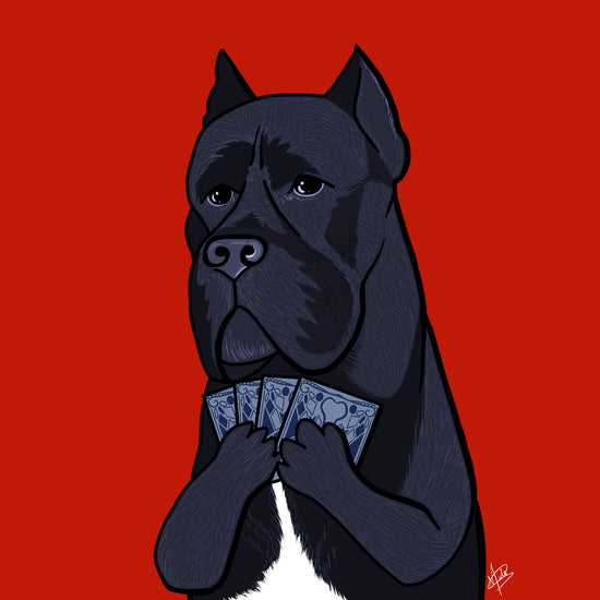 'Poker Paws' is the collection of Miilo’s clean version of all nine avatars of the ‘Dogs Playing Poker’ featuring The Bull Terrier, The Cane Corso, The Staffordshire, The Great Dane, The Bloodhound, The Bulldog, The Saint Bernard, The Pitbull, and The Mastiff.